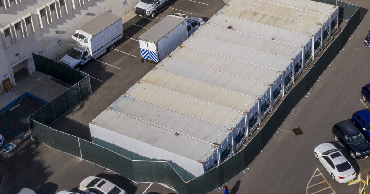 With hospital morgues and funeral homes full and deaths mounting, California struggles to store the bodies of COVID-19 victims.